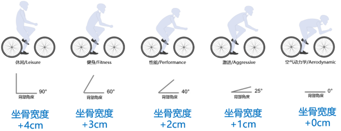 | 骑行姿势 (背部角度) | 坐骨宽度修正值*(在测量基础上加)* |